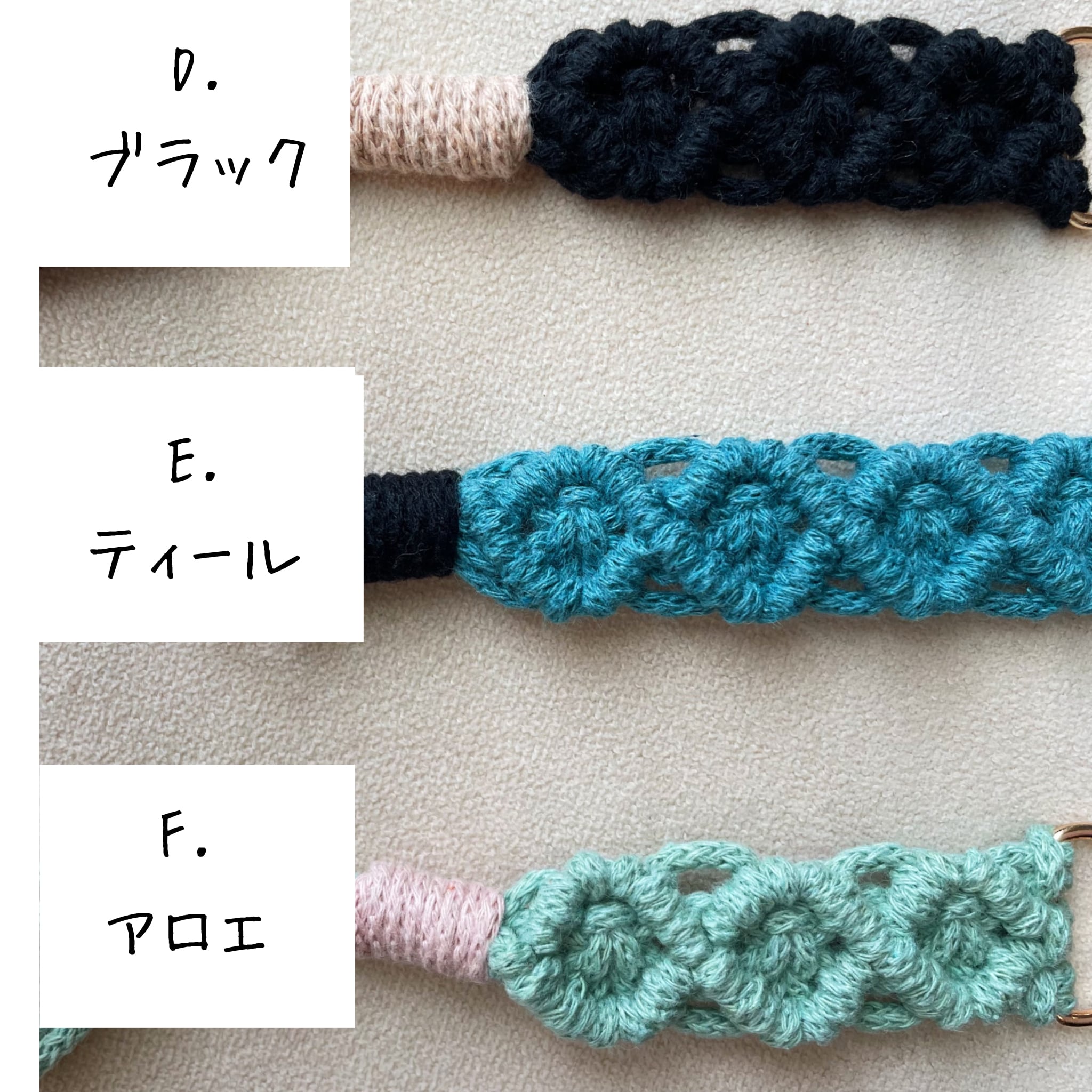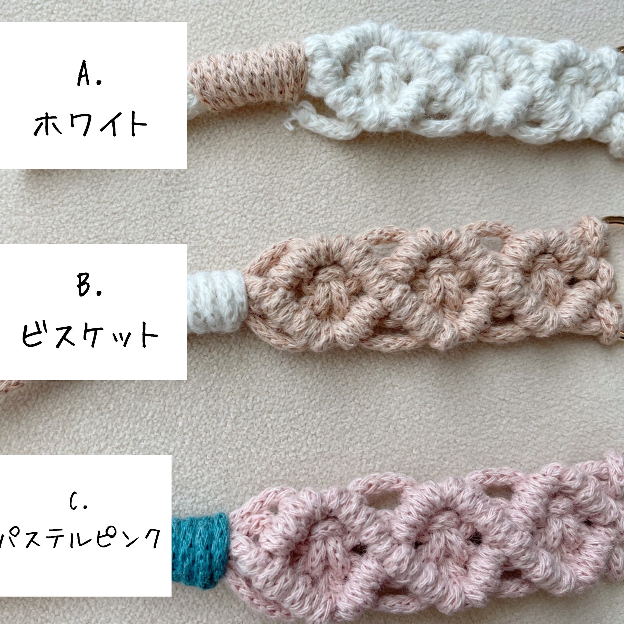 キッズフォン、鍵、キッズカメラをマクラメショルダーでおしゃれに安心して管理できます。