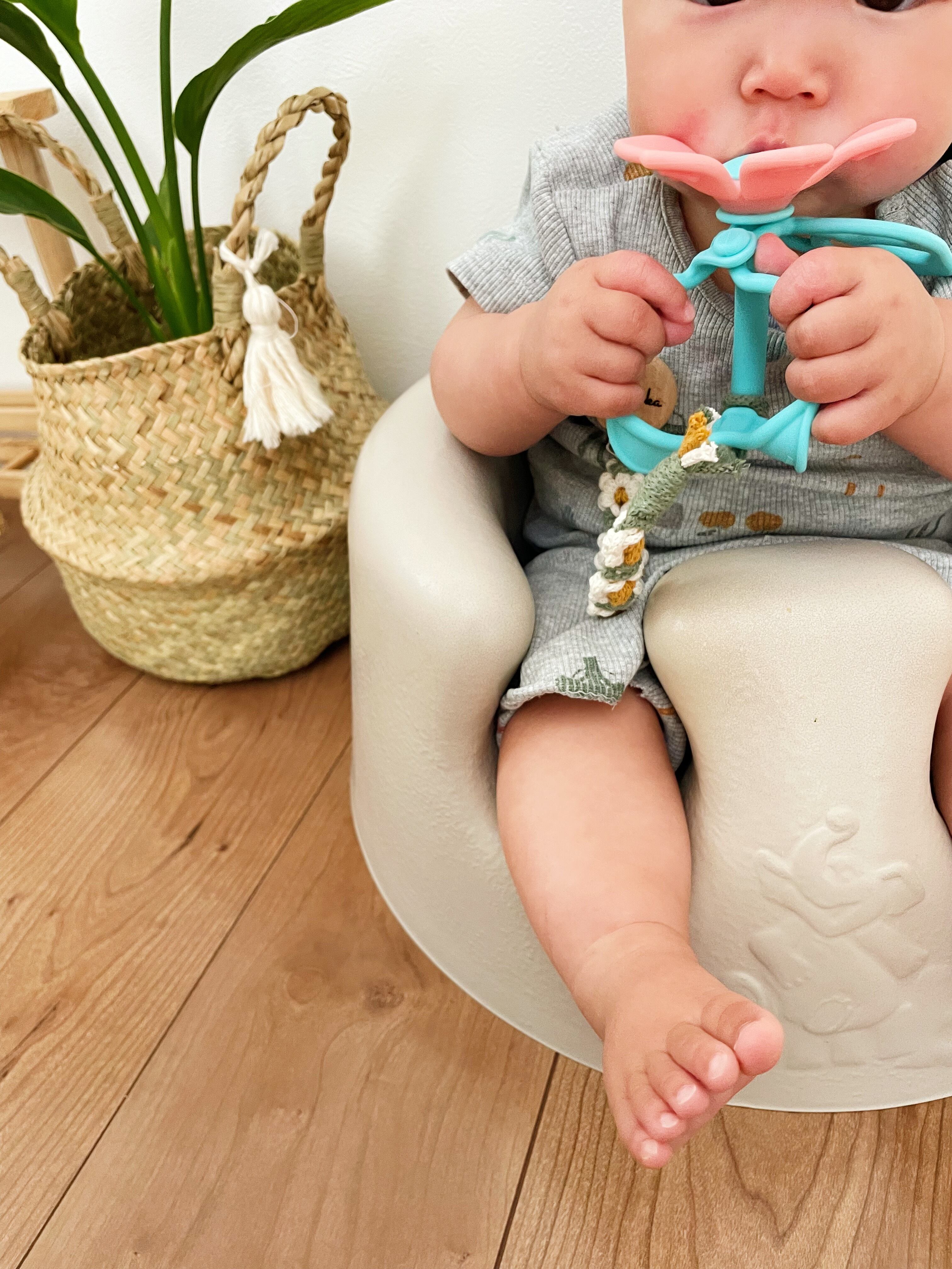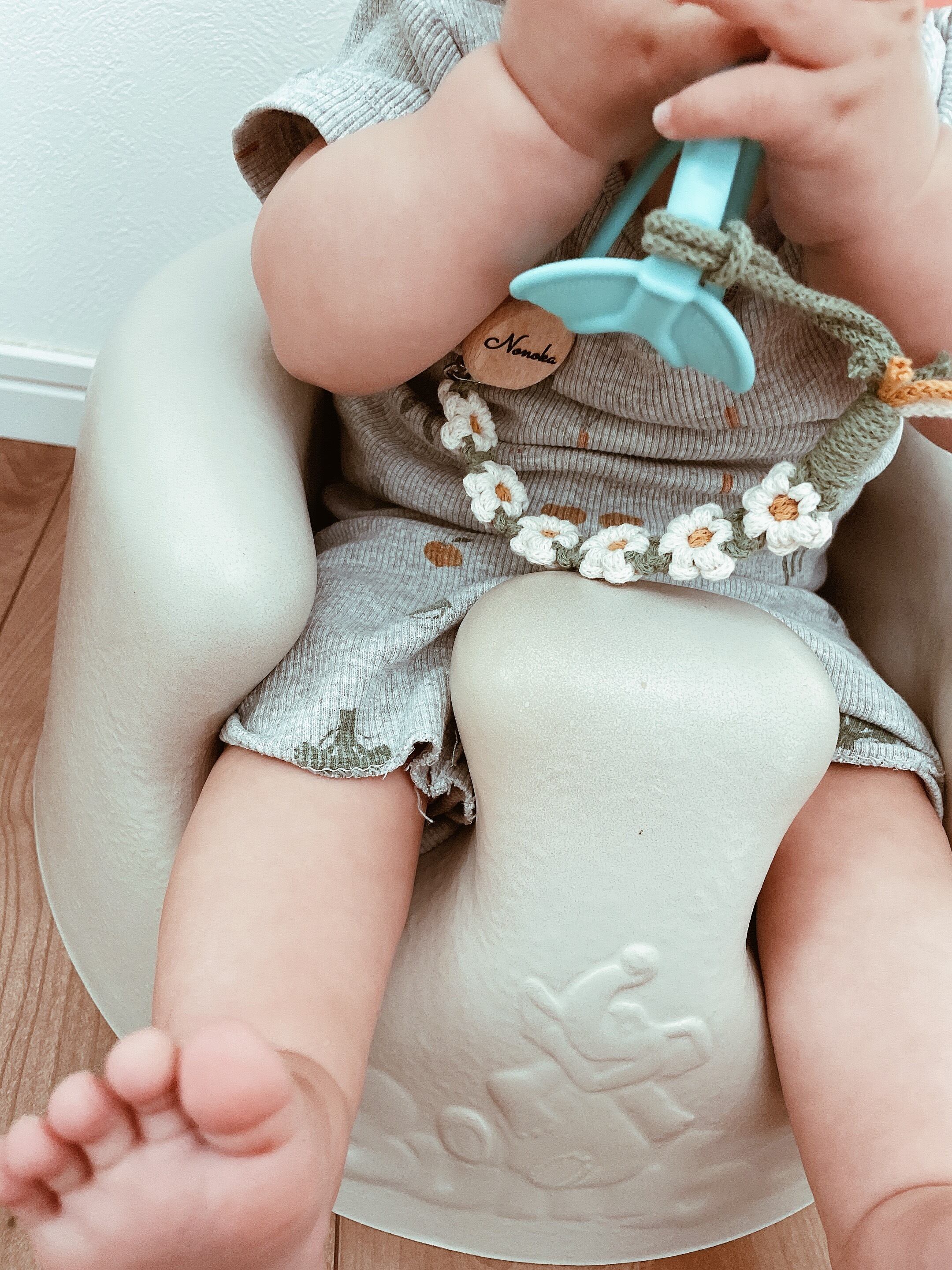 と迷われるかもしれませんが、お気に入りのオモチャを付けておく事も可能なので、特にお出かけの際やベビーカーに乗っている時、外食時などは下に落とす心配がないので