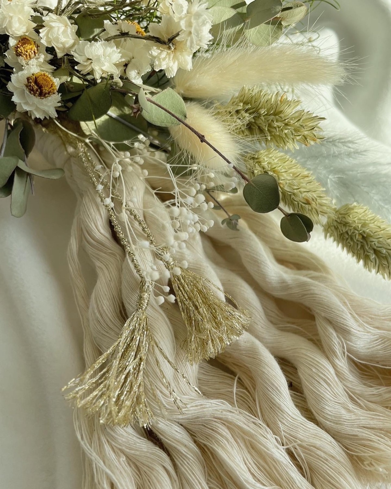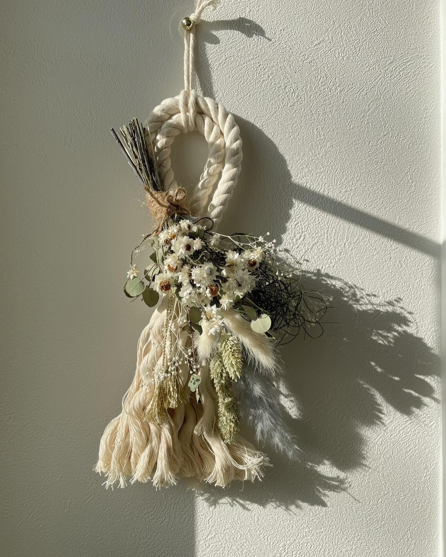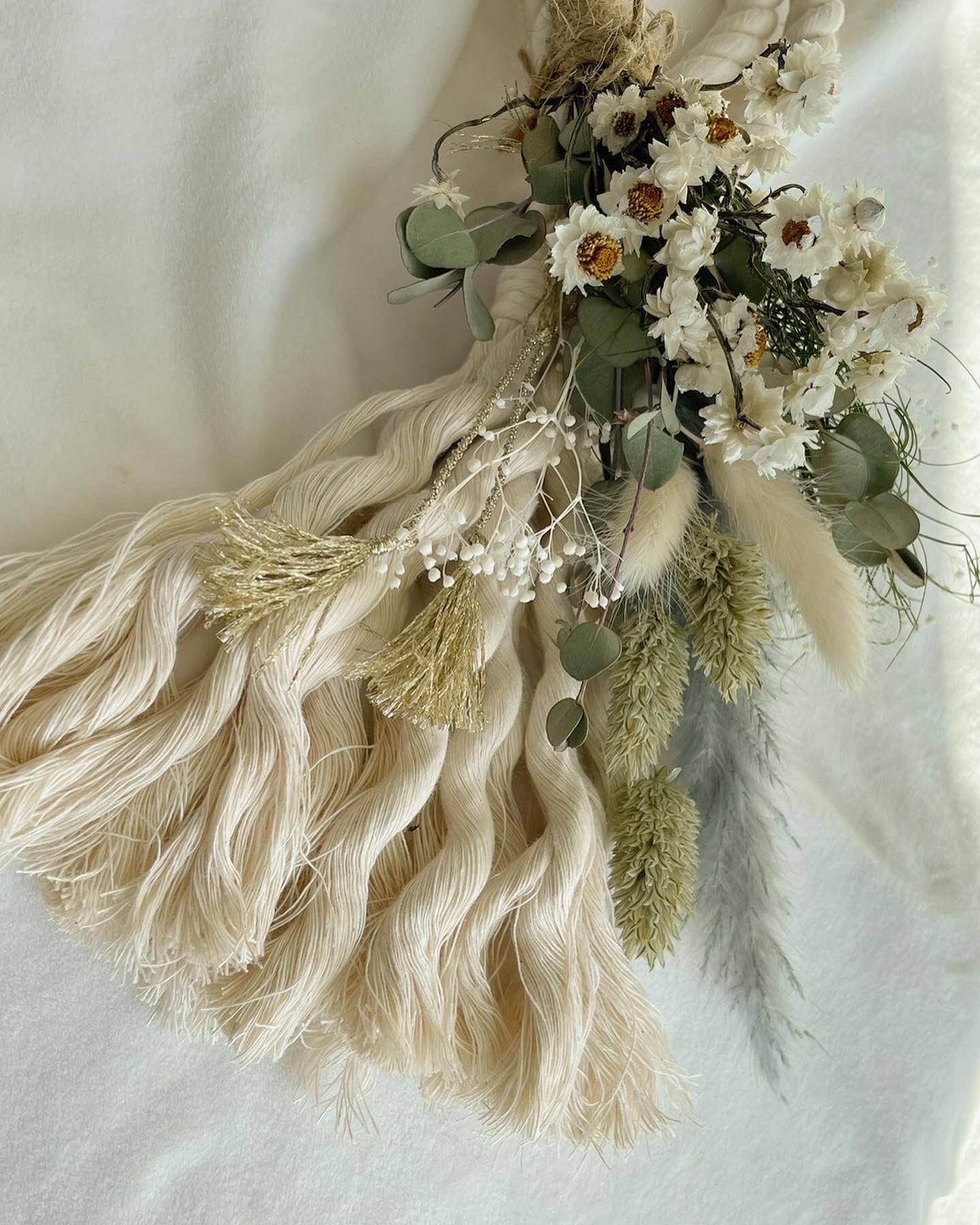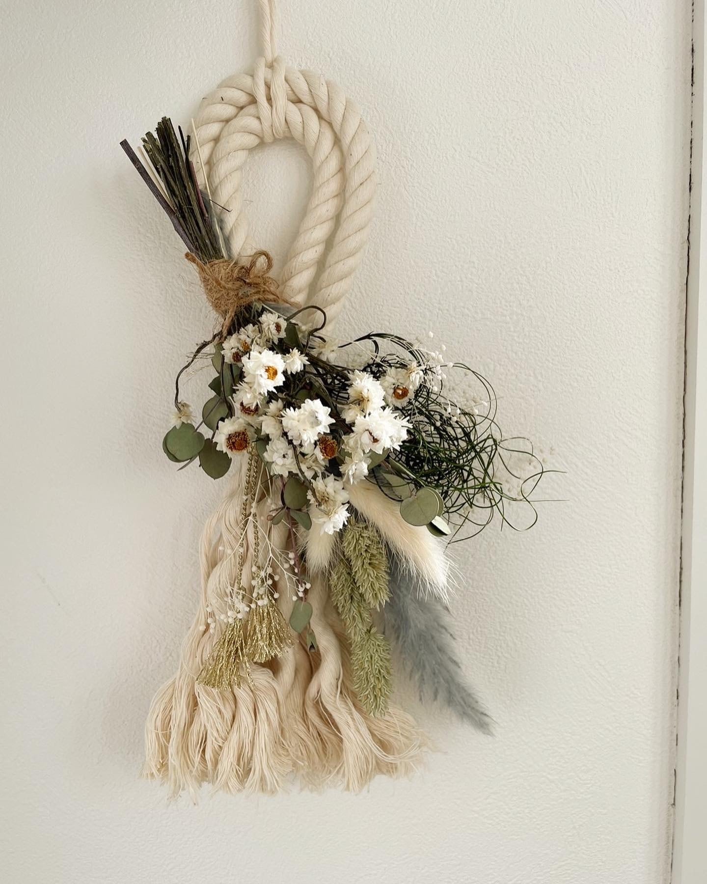 ドライフラワーと、プリザーブドフラワーを付け、仕上げました:)