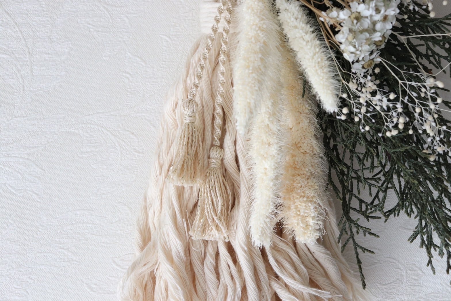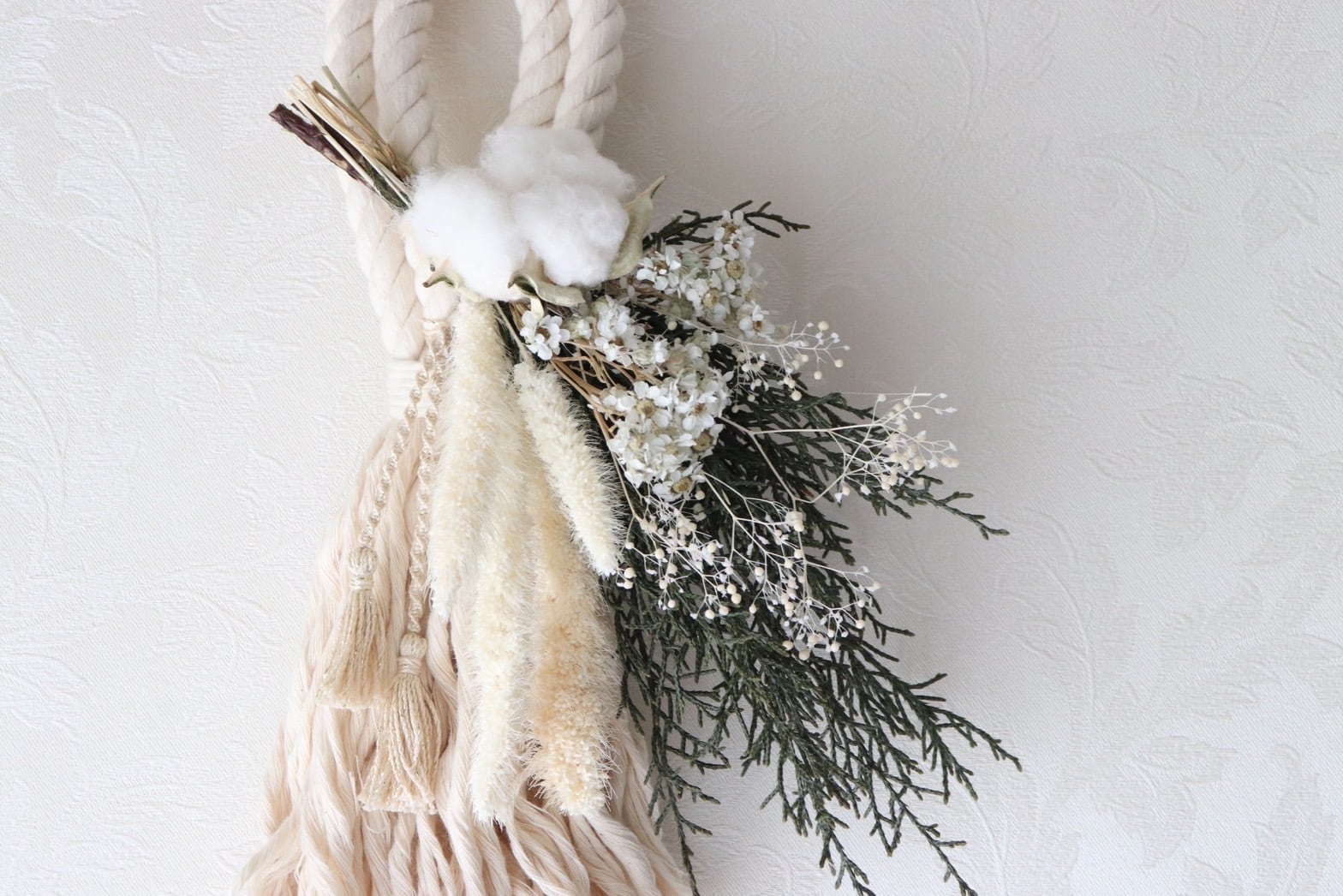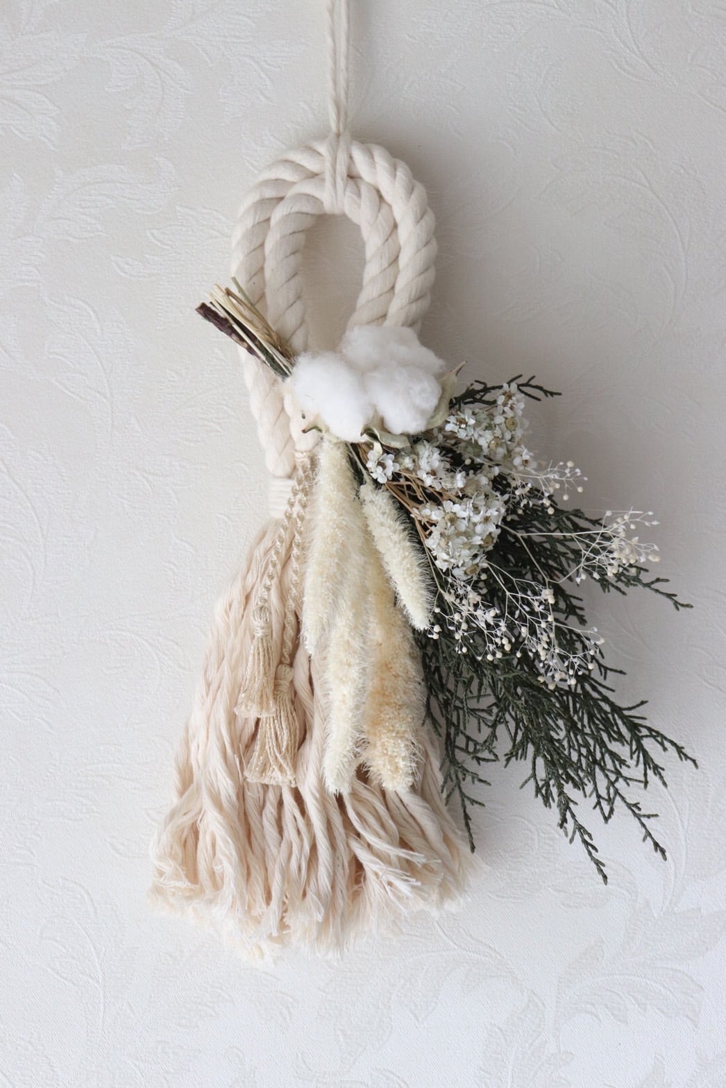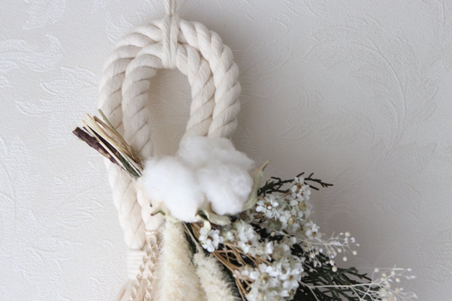 ドライフラワーとラタンのHello flower gjコラボのしめ縄アレンジです♡