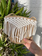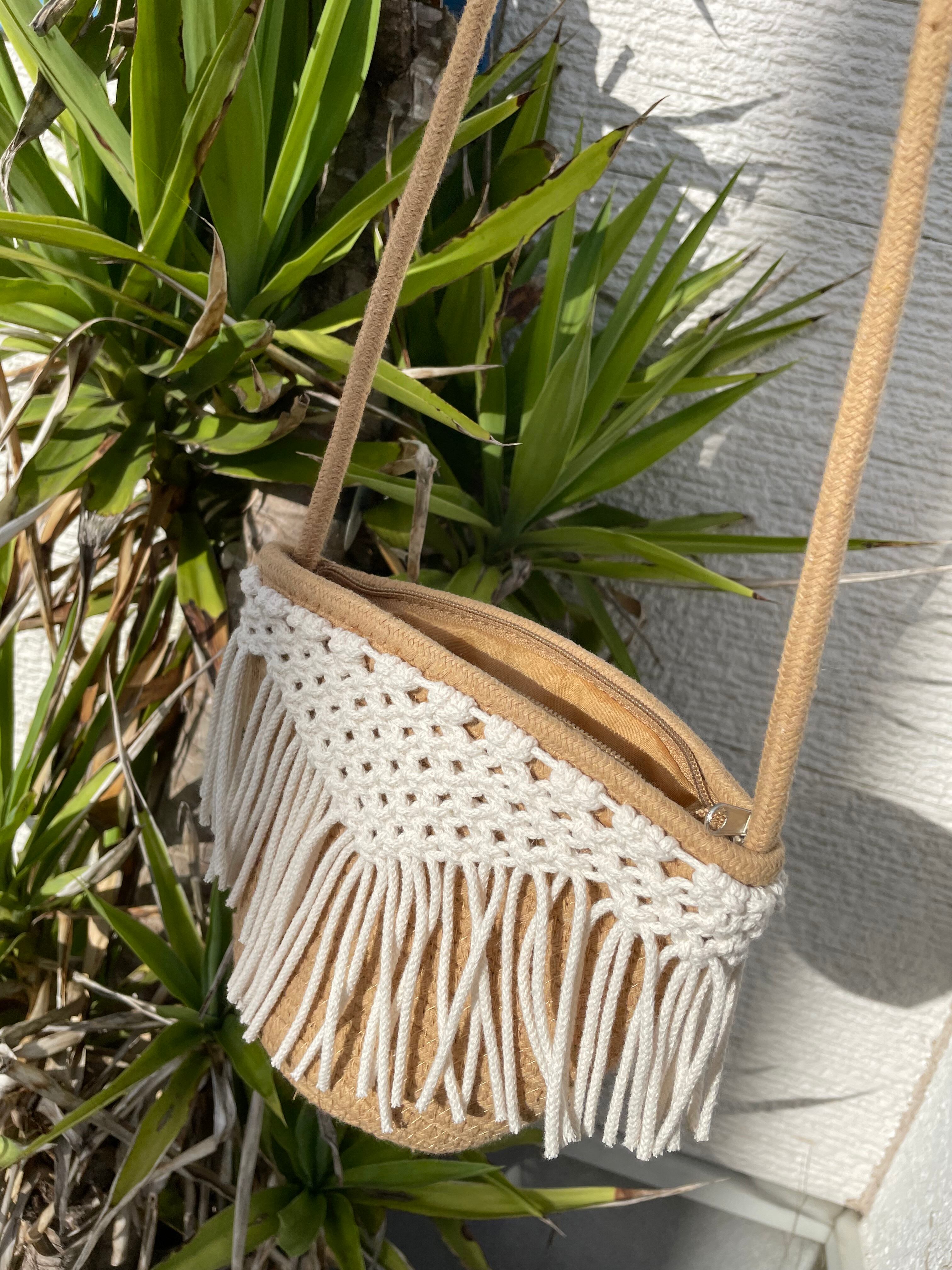 バッグの裏、表にマクラメ編みを施しましたっ!