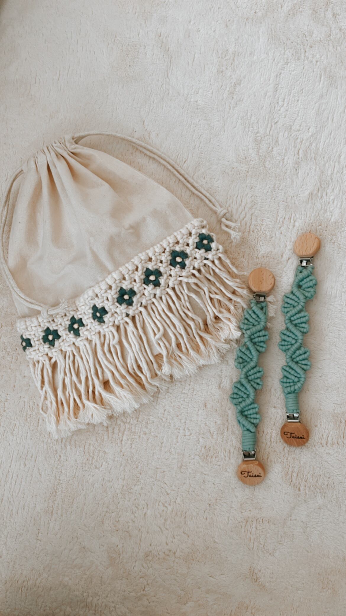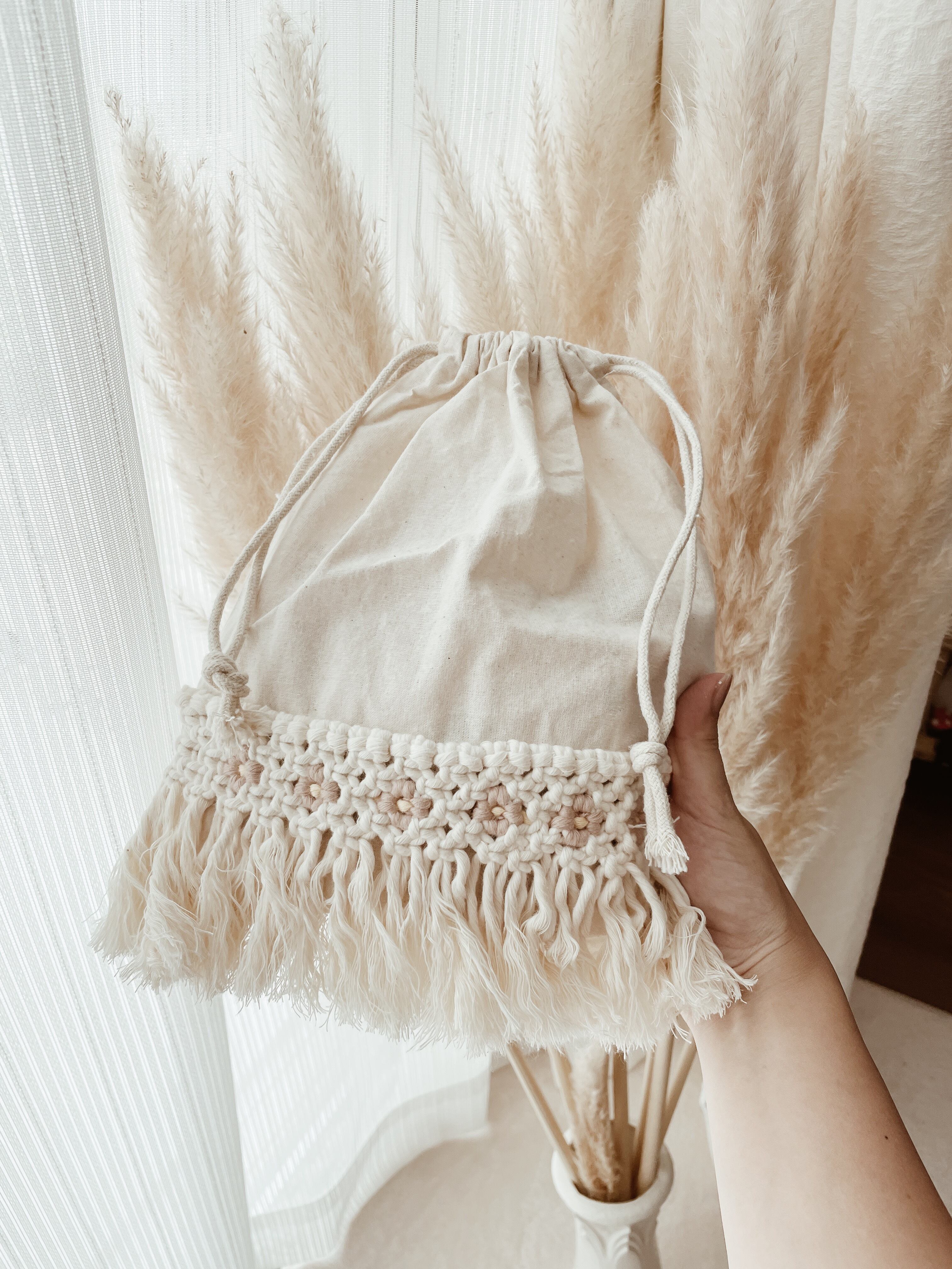 マクラメ模様は裏、表に装飾致します。(接着剤を使用しております)